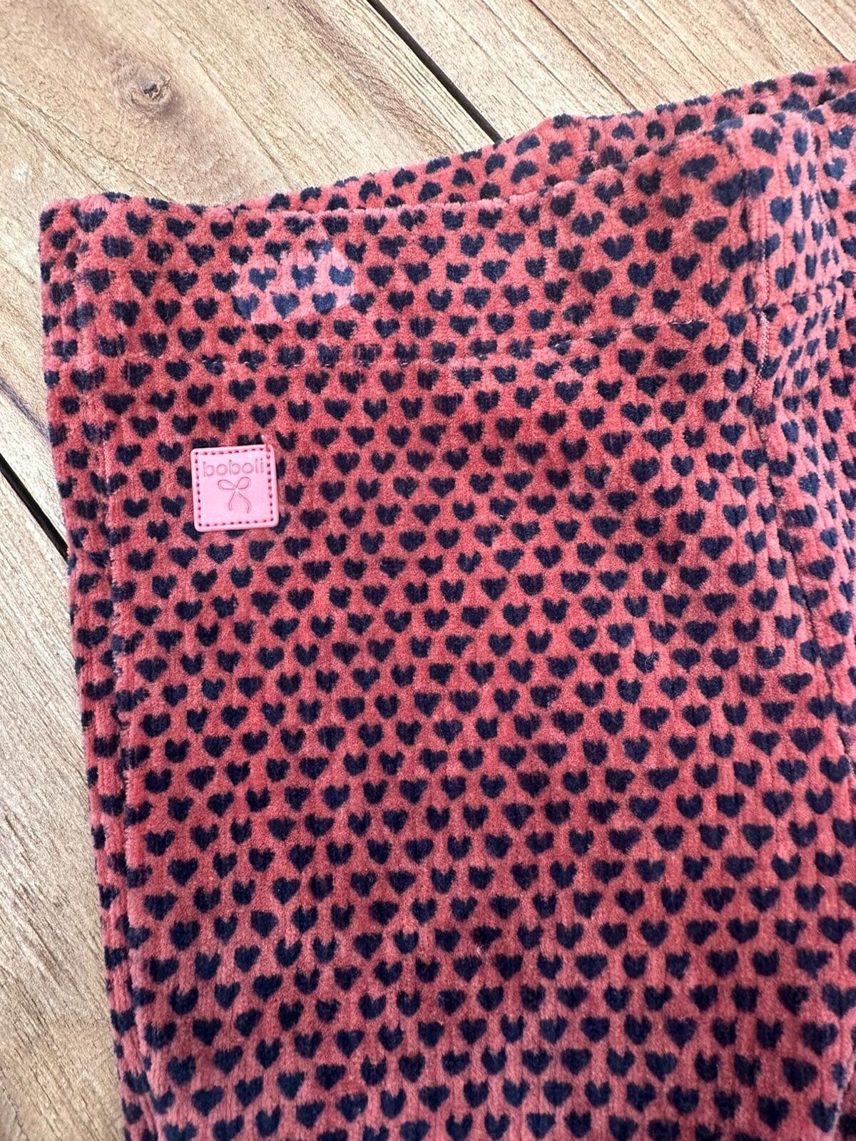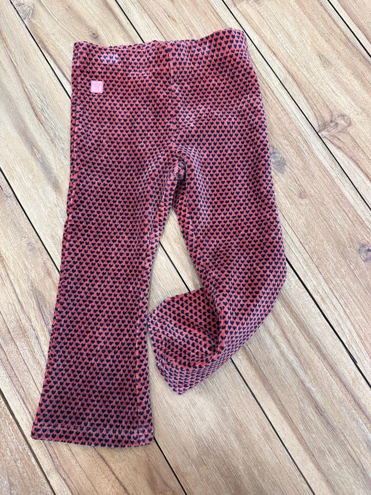 Pantaloni in velluto con cuoricini e gamba a zampa