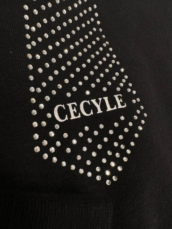 Felpa nera crop per ragzza con cravattina disegnata in strass