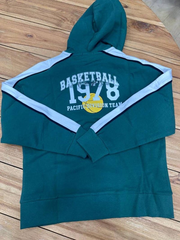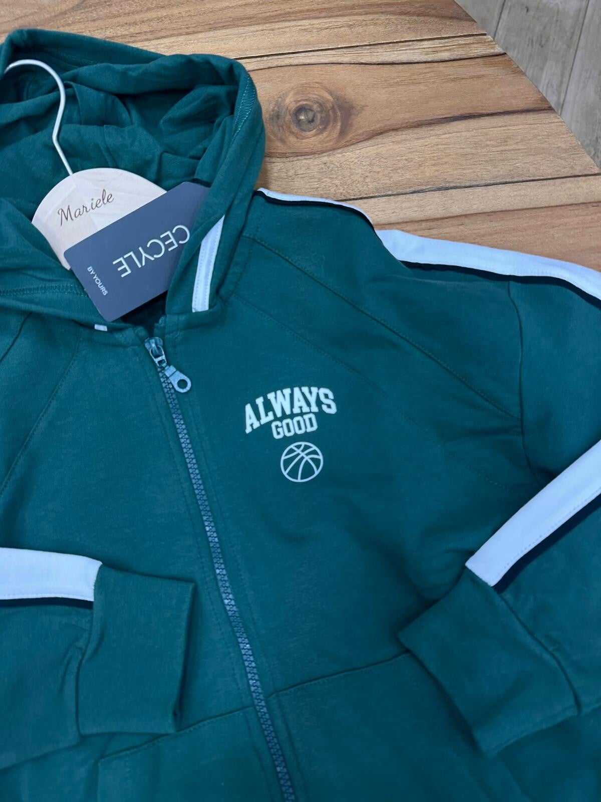 Felpa ragazza con zip e cappuccio con stampa posteriore basket in verde