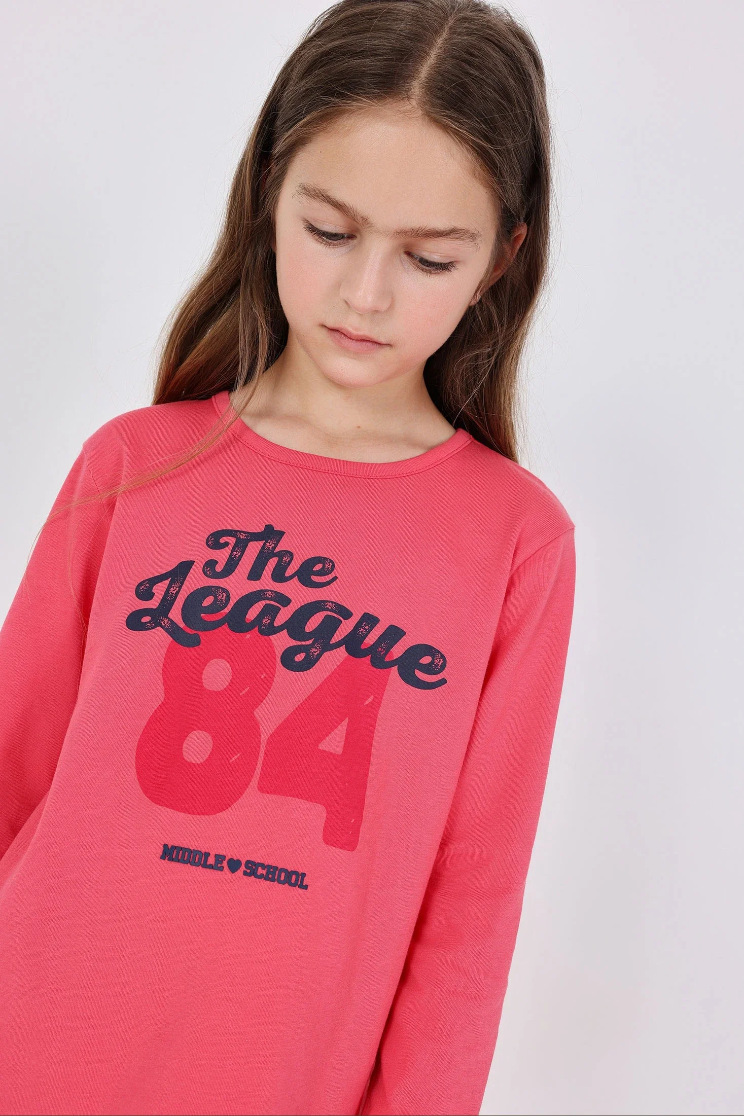 Maglietta in maglia di colore magenta con lettere, ideale per bambini nelle stagioni autunnali e invernali, offrendo comfort con uno stile moderno. Realizzata in tessuto di maglia morbido, presenta un design con le parole "The League 84" in colore blu marino che conferisce un tocco accattivante e distintivo. Perfetta per l'uso quotidiano o eventi casuali, si abbina facilmente a jeans o pantaloni per ottenere un look comodo e moderno. è una scelta pratica e versatile per il guardaroba dei tuoi figli.