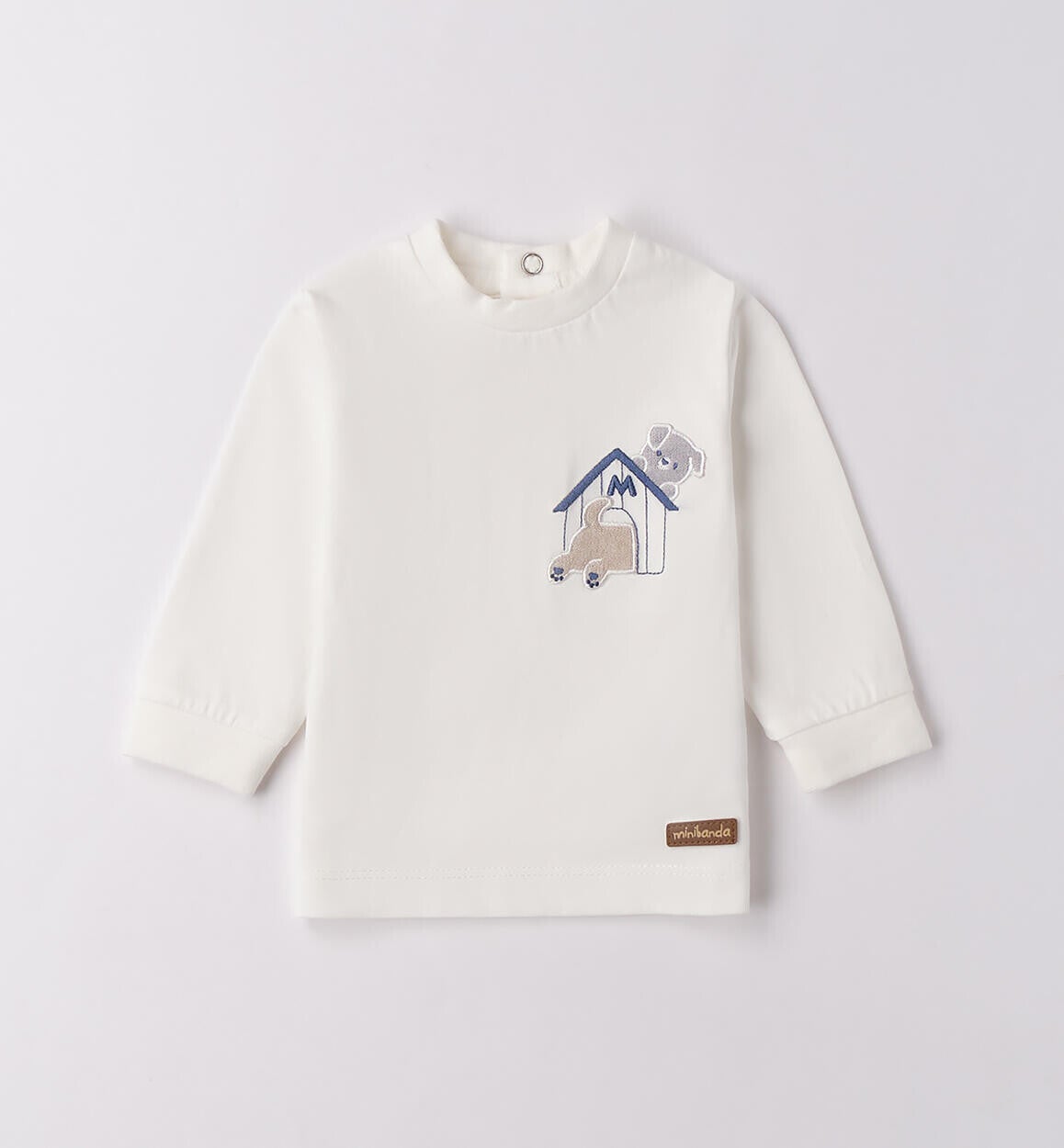 Maglietta per bimbo Minibanda 1-24 mesi realizzata in jersey 100% cotone manopesca. Dolce ricamo davanti. Il modello presenta apertura sul retro con bottoni a pressione per agevolare il cambio e la vestizione. Scegliendo i nostri prodotti in cotone, sostieni il nostro investimento nella missione Better Cotton. La fornitura di questo prodotto avviene tramite un sistema di bilancio di massa e potrebbe non contenere Better Cotton. Leggi di più su bettercotton.org/massbalance
