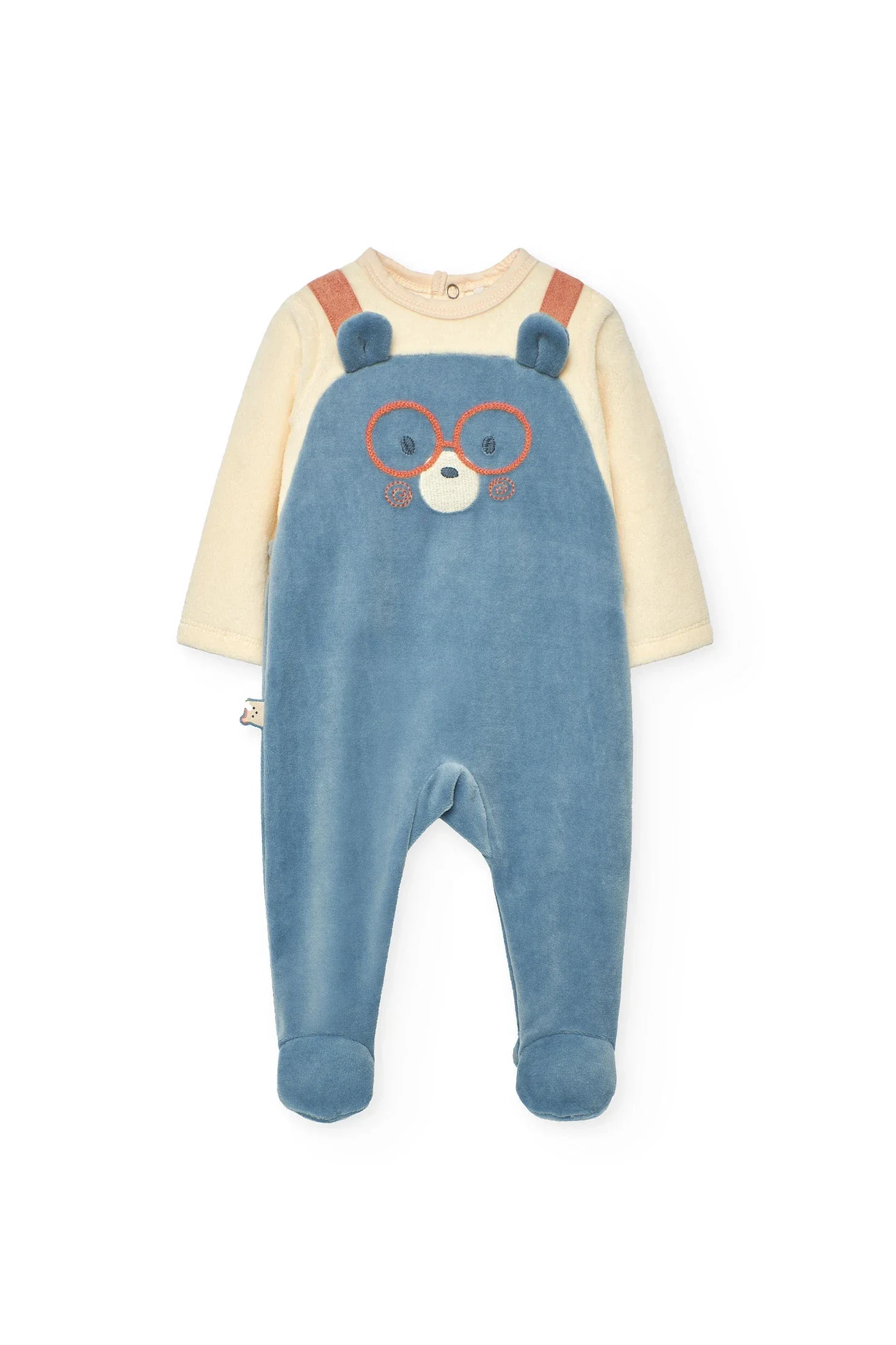 Tutina in velluto azzurro per neonati, ideale per mantenere il tuo piccolo comodo e caldo durante i mesi invernali. Presenta un adorabile motivo animale che aggiunge un tocco affascinante e accogliente all'abbigliamento del tuo bambino. i, assicura una vestibilità perfetta man mano che il tuo bambino cresce. Progettato con maniche lunghe e collo rotondo, è facile da indossare e offre grande comfort. Perfetto per i genitori che cercano una combinazione di stile pratico e attraente nell'abbigliamento per bambini.