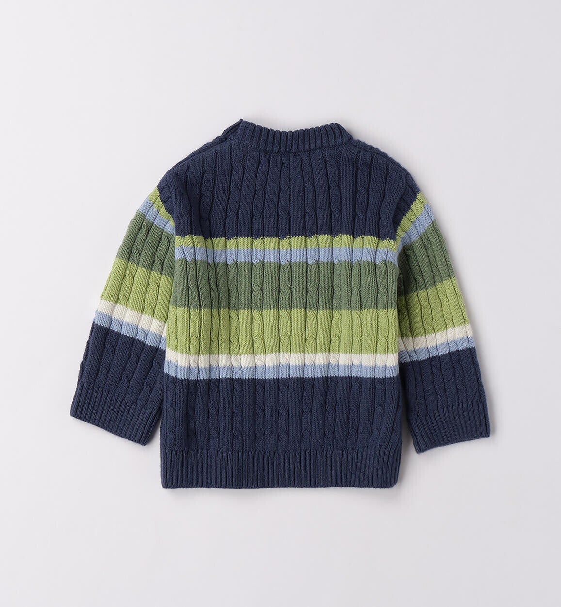 Maglioncino per bimbo Minibanda realizzato in tricot cotone e lana. Il modello presenta apertura sulla spalla con bottoni e particolare lavorazione. Scegliendo i nostri prodotti in cotone, sostieni il nostro investimento nella missione Better Cotton. La fornitura di questo prodotto avviene tramite un sistema di bilancio di massa e potrebbe non contenere Better Cotton. Leggi di più su bettercotton.org/massbalance