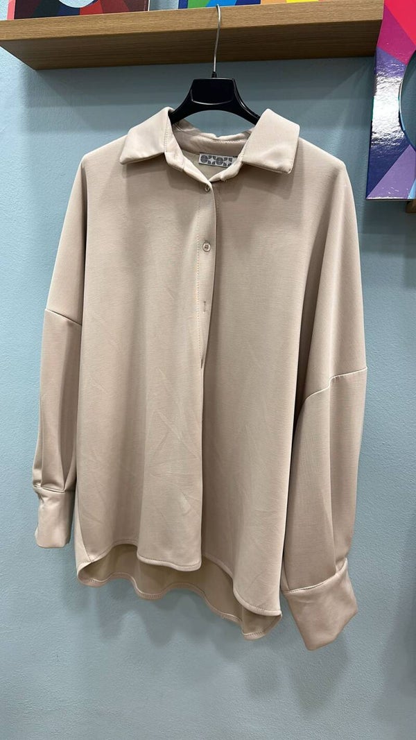 Felpa morbida in viscosa modello camicia larga. Vestibilità abbondante.
